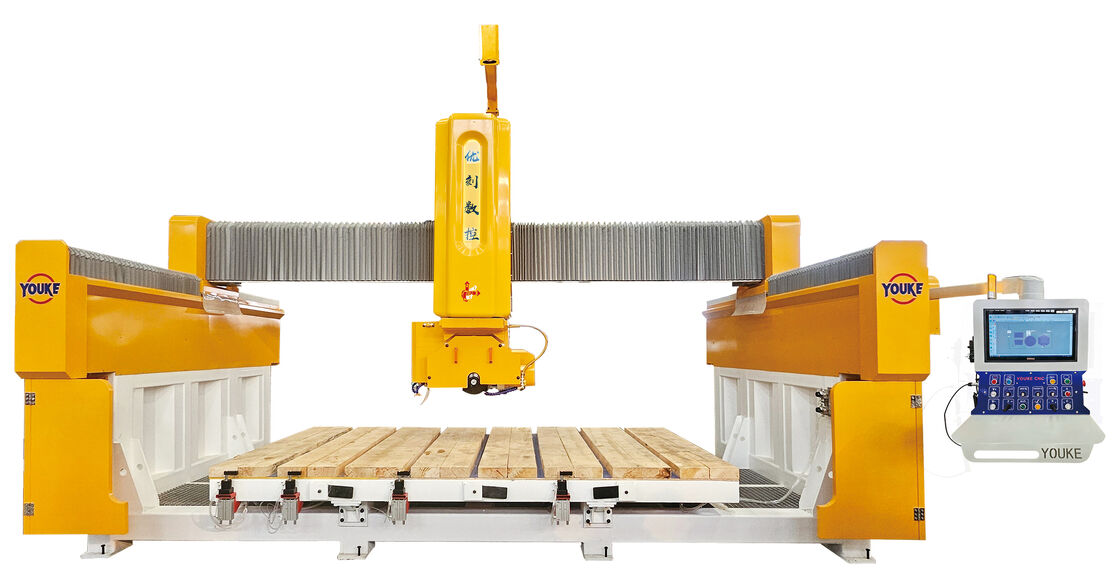 Questa macchina è una fresa a ponte a 5 assi appositamente progettata per il taglio e la profilatura di precisione di lastre standard e forme complesse e irregolari. È in grado di elaborare una vasta gamma di geometrie, tra cui poligoni, triangoli, forme a ventaglio, piani di lavoro, ellissi, diamanti, cerchi, bordi a toro, smussi ad angolo arbitrario, nonché linee rette e curve. Con la sua elevata velocità di taglio, precisione eccezionale e funzionamento intuitivo, è ideale per la lavorazione di materiali come pietra sinterizzata, marmo, granito, quarzo e altri pezzi grezzi di forma irregolare o personalizzata.